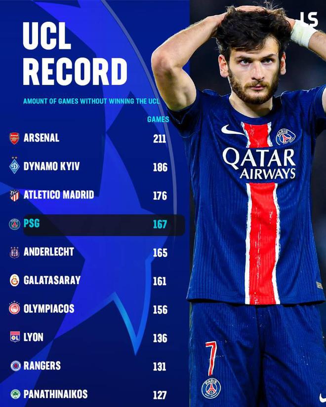 能否圓夢慕尼黑?巴黎參加167場歐冠至今仍未奪冠