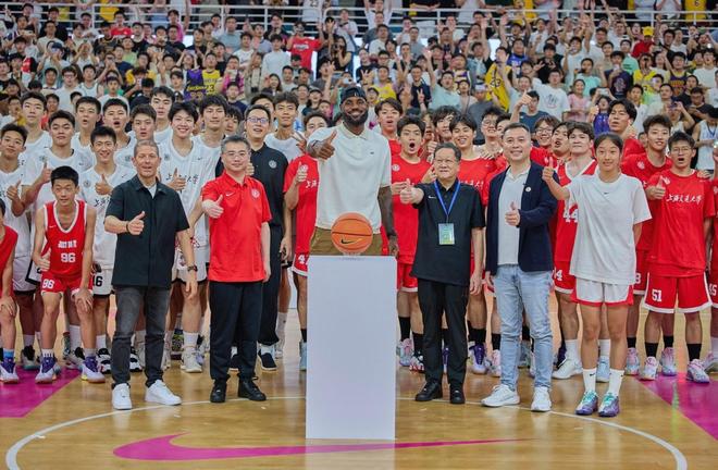 詹姆斯現(xiàn)身上海交大 與全場球迷熱情互動