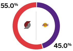 賽前,美媒ESPN預(yù)測(cè)本場(chǎng)比賽勝率,其中湖人為45%,開拓者為55%。