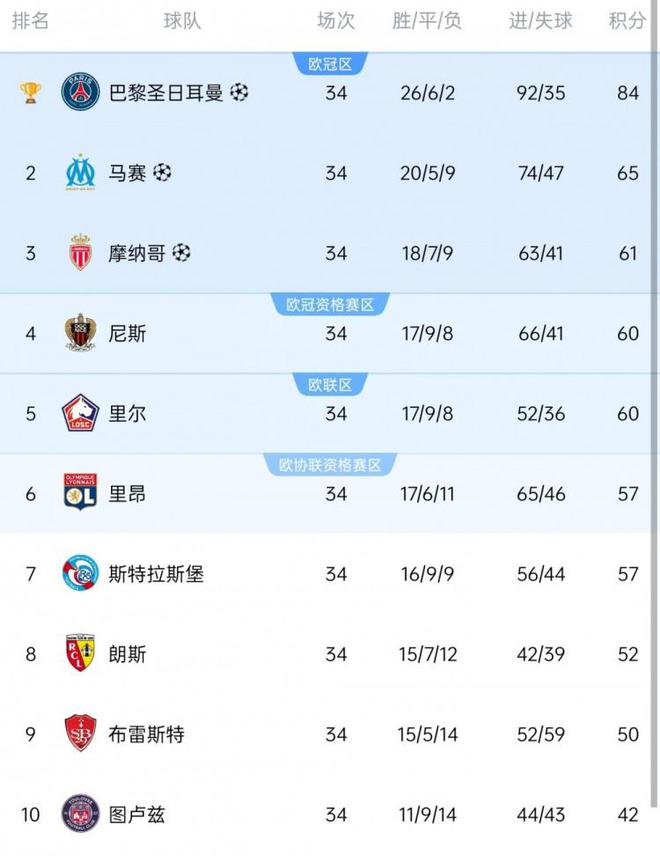 法甲歐戰(zhàn)球隊:巴黎、馬賽、摩納哥、尼斯歐冠,里爾、里昂歐聯(lián)杯