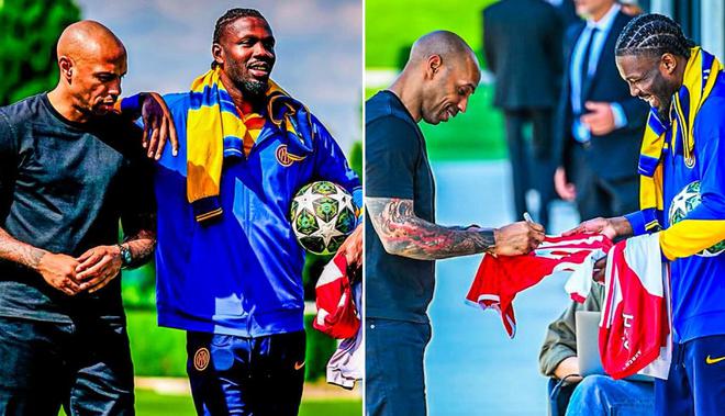 兒廠夢?小圖拉姆與亨利一起備戰(zhàn)歐冠,讓后者在阿森納球衣上簽名