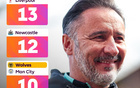 佩雷拉上任以來(lái),狼隊(duì)英超豪取10勝,僅次于利物浦&紐卡